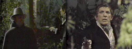 In the woods, Barnabas calls to Josette. He hears a rustling and draws his pistol, demanding the person show himself. An apparition in a hat and coat appear to Barnabas, claiming to be his Uncle Jeremiah. "Poor Barnabas," says the ghostly figure mockingly-- Josette is gone, she has left you, she doesn't love you, she's in love with me. She has left you to marry me!"
