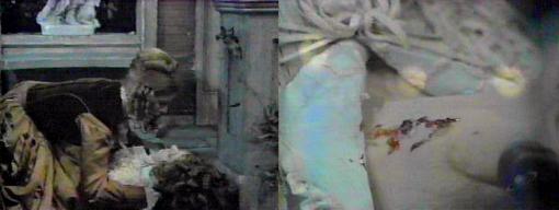 Collinwood - Samantha runs in--Ben!--anyone!--somebody please answer me! Gerard pounds downstairs--what's happened? I found Roxanne dying at the gazebo, cries Samantha--she looks like she's been attacked by a wild animal--you must come with me! The two of them run from the house. When they return to the gazebo, Roxanne is gone. She was here, I saw her! insists Sam. Gerard kneels and rubs his fingers over a red wet spot--"Blood," he says--Samantha, control yourself--she must have gotten to he feet somehow. Near hysteria, Samantha says, she couldn't have, she was unconscious--we've got to find her, Roxanne couldn't have been taken far. Gerard grabs her arm--you aren't in any condition to go anyplace except back to Collinwood, he says. She could be dying! cries Samantha desperately--you must find her. He hustles her off the gazebo--I'm going to, he assures her.