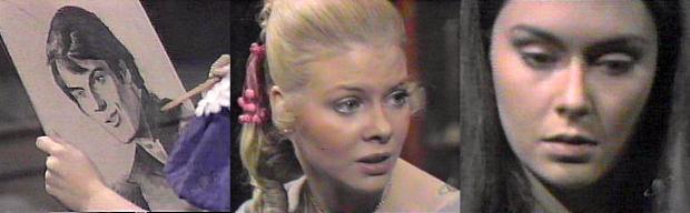 NOTES: One of DS' pivotal episodes: Angelique lifts Barnabas' curse (one wonders why she never did it before, but I guess she got the power to do so successfully since 1797). She tells him she loves him, again, but this time sounds very sincere. Julia almost confesses her love, but stops short; you know Barnabas knows it. Her face, filled with pain and adoration, is something I will never forget, and her bitter remark that Barn and Ang are husband and wife is an admission that has to hurt her deeply. Angelique tells Barnabas the tale of her origins, and agrees to do what he says in regards to not testifying against Quentin. His attitude toward her is different, gentler. From her cruelty in turning Roxanne into a vampire and her attempt to force the same fate on Julia, Angelique has seemingly turned into a completely different person.