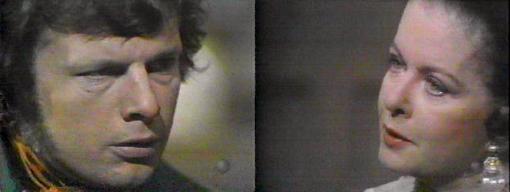 1229 - Downcast, disbelieving, Daphne watches her husband kiss her sister. Catherine finally breaks away--we can't do this, she says--it can only lead to tragedy. I only know we cannot help ourselves, insists Bramwell. She shakes her head--no, she says. Admit to me you feel as I do, he says, whirling her around to face him--let me hear you say it! What good would it do to say it? asks Catherine, it's all hopeless, you know that. Let me hear you say it, he commands. "I love you and I will always love you," confesses Catherine--"but it changes nothing--you're married to Daphne and I to Morgan--our whole situation is hopeless, there's no end for us, Bramwell!" Daphne leaves her hiding place.