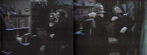 NOTES: Morgan's stint in the room has apparently unhinged his mind--or is it that, learning his beloved, pregnant-by-Bramwell Catherine doesn't really love him, his mind simply couldn't handle the shock? Whichever way it was, he is clearly insane, and his actions here prove it. That he could lock Catherine in the room is unthinkable, but to shoot dead a pregnant woman is only the act of a man who has lost his mind completely. This episode featured some wonderful acting on Keith's Prentice's part, too. He really improved with time in this storyline.