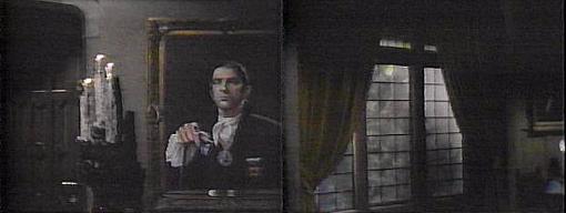 The camera pans the foyer, the living room; lightning flashes and thunder swells as we hear the final BUM BUM BUM!