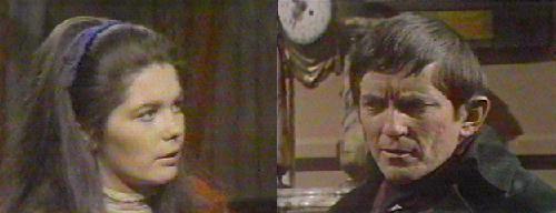 Ben brings Vicki into the Old House, assuring Barnabas no one saw them.  Barn sends Ben to get the starving, exhausted Vicki some food. She's been afraid to sleep, fearing Trask, Vicki tells Barnabas, who promises her asylum from Trask, a persecuting fanatic, in his opinion.  He assures her he knows she isn't a witch; he saw her with Sarah. She decides it's time to tell him the truth about herself and reveals she's from 1967, is a governess for his descendents--she thought she recognized him because she knows his ancestor, also named Barnabas, from that time. She reveals she was transported somehow during a seance. Barnabas listens and calls it incredible, but you can see he is wavering in his feelings about Vicki. He can understand why she didn't feel she could tell anyone else, Vicki says, and he heartily agrees with this. She thanks him, but notices that he seems upset. Ben comes in--Vicki's food is ready--and Barnabas encourages her to go to her room upstairs, eat and rest. After Vicki leaves, Barnabas asks Ben if she thinks the girl could be a witch (way to go, Vicki). Ben insists no, she's no witch. How can Ben be so sure; does he know something Barnabas doesn't know? No, he just knows, Ben says.