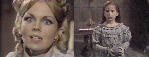 Downstairs, Joshua and Abigail are calling to Sarah, and Angelique stands at the bottom of the stairs, grinning with triumph. Abigail interrogates Sarah in Vicki's now-empty room, and the trembling-voiced child lies and says she never saw Miss Winters. Abigail shudders to recall what happens to little girls who lie, and you can see how hard it is for Sarah not to tell all--but her love for Vicki is stronger than her fear of Abigail, and she insists, again, that she didn't see Miss Winters anywhere in the Old House. Joshua apologizes to Barnabas for their intrusion--he doesn't usually give in to Abigail's hysteria, but his children are important to him, and he can't bear to see them coming to hard--or disgrace, he adds nastily, gazing directly at Angelique, who turns away in shame and anger. (Lighten up, Josh!) Abigail sourly says Sarah denied everything, and Barnabas suggests they listen to the child. Sarah insists she's telling the truth, but Abigail insists the witch is using her powers to hide herself from them. Trask will come to the Old House and use exorcism to oust the witch, says Abigail. Barnabas is dead set against this, but Joshua asks him to go along--let Trask perform his mumbo jumbo and when nothing happens, perhaps it will put the matter to rest. Abigail insists Trask is a righteous man, but Barnabas calls him a fraud. Angelique agrees with Joshua to let the man perform the exorcism, and Barnabas reluctantly agrees, saying it goes against his principles.