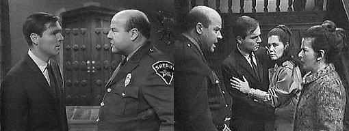 You know what we're going to do, Frank offers, we're going to get out of here--I'm going to drive you into town and buy you the biggest streak Collinsport has to offer--are you agreeable? Very agreeable, says Vicki, and they rise from the couch. Roger enters the house. Oh, it's you, he says coolly to Vicki, then asks Garner what he's doing here. Taking Vicki to dinner, says Frank. Have you heard what happened? Vicki asks Roger. Yes, he replies, it was quite a shock, wasn't it?--where's my sister. At Matthew's cottage, with the sheriff, answers Vicki. Thank you, says Roger, and turns to go. Vicki stops him. I just want to say how very sorry I am for all the things that happened, she says. Sorry?--why should you be sorry? he asks icily--for assuming I'm a homicidal maniac?--putting me through the worst experience of my life? (I think she's got you beat there, Rog.)--think nothing of it, it was nothing.