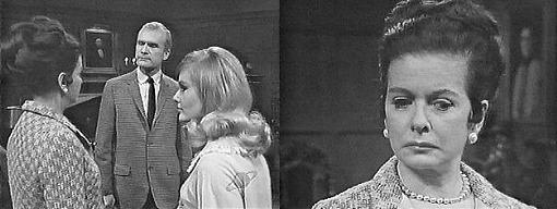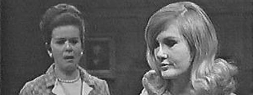 Collinwood - The clock strikes one AM. Carolyn comes downstairs in her robe and touches Vicki's suitcase, still lying on the foyer table. She enters the drawing room, calling for her mother, but Liz, still dressed, is outside, looking around, a coat thrown over her shoulders. She comes in and Carolyn runs to her, asking if they've found Vicki yet. No, says Liz, warming herself against the cold, Joe came back for a minute, then went out again--it's been a few hours--I've made them some coffee---it's cold and damp out there. What do you think happened to her? asks Carolyn. I've thought too much about that already, says Liz, going into the drawing room. Carolyn follows. You make it sound so awful, she says--Vicki will turn up, she can take care of herself. Under normal circumstances, yes, says Liz, but if you'd seen Matthew at her throat as I did, you might not feel so confident--Vicki's a very vulnerable girl and Matthew's a very desperate man. Matthew's miles away from here, says Carolyn. I wish I could be sure of that, says Liz. He couldn't be around here, it would be too dangerous for him, says Carolyn. The sheriff said all our roads are blocked, Liz tells her, but they haven't seen him yet--he could be anywhere. But NOT here, insists Carolyn. I don't know, says Liz, he's lived in this area so long, he knows more hiding places than David! Burke will find her, says Carolyn gently. I hope so, says Liz, then looks at her daughter's moonstruck face and says, "You have a lot of faith in him, haven't you?" Shouldn't I have? asks Carolyn. You know my answer to that, says Liz. I knew this was coming! laments Carolyn. Yes, that's one redeeming feature about the obvious, says Liz--you can always depend on it--Burke is an obvious person--he's an enemy of this family and therefore an enemy of yours, too. You will never sell me that, says Carolyn. I won't have to! cries Liz--he'll do it himself--he'll hurt you badly, and it's just a question of time. I wouldn't be too sure of that, says Carolyn. It's inevitable! says Liz--Burke is dedicated to revenge--you'll find you're only his instrument! That's because you only see what's on the surface, insists Carolyn, you refuse to go beneath and find the man he really is. No, darling, that's your mistake, says Liz, and a very serious one--Burke only permits you to se the man he wants you to see--he's calculated and well-planned, and you'll find you have an important role on his plans. You've lived in this house too long, says Carolyn, everything's sinister to you. If you could just look at him objectively, says Liz, you'll see he's too old for you, you're still a young girl! That's the way you see me, of course, says Carolyn, wiping away a tear--tell me, Mother,, when will you bestow the title of woman on me? When it's a fact, says Liz. Well, it won't be a woman who bestows that title on me, it'll be a man--Burke Devlin, says Carolyn defiantly. Carolyn! says Liz. I'm sorry to be this way, but it doesn't matter if you rant and rave, lock me in my room, disinherit me--I'm going to spend my time with him--and maybe even my life.