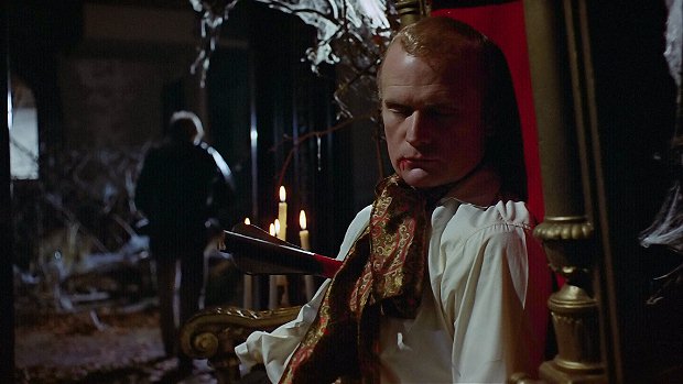It's really odd to be complaining that I can't see Roger Davis's face. *tired laugh* It brings back memories of a screening I attended at the Brattle theatre a couple of years ago of the HORROR OF DRACULA Blu-Ray.  That had been graded so dark--with the trademark BD slightly bluish tinge to many scenes--that half the movie was nearly invisible, since a lot of it was shot day for night. In the sequences where the image was clear, the lighting had been graded very cold with a very muted, slightly blue color palette. Given how so many film critics made Hammer's "garish" use of Technicolor/Eastmancolor such a talking point over many decades of discussion and review, it's been curious to see fans arguing that the recent "restoration" was "exactly the way Jack Asher wanted the movie to look."