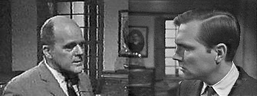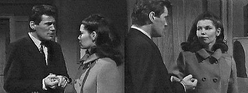 Let's get one thing straight, says Frank to Riley, you have no basis for accusing Laura Collins of anything--it's just supposition. Of course it is, says Riley, I tried to make that clear. And there's a very good possibility that she will never be accused of anything, states Frank. Unless we come up with some evidence, says Riley. Which isn't likely, says Frank. Your client can feel secure--for the time being, agrees Riley--we're going to need her for more questioning--well, I'll be going. Thanks for dropping by, says Frank. Riley takes his coat and hat. Not at all, he says, you were right to be filled in on the facts. The phone rings; Frank excuses himself. Would you ask her to wait a minute? Frank tells his secretary. Tell her to wait less than a minute, advises Riley, coat over his arm, hat on, I'm practically out the door. Thanks again, says Frank, for everything. Thank me for the facts--that's all you got, says Riley, and goes. Frank speculates. Vicki comes in, smiling. How are you, come in, he invites, glad to see her. Are you busy? she asks, I didn't want to barge in and disturb you. No, no, I'm glad to see you, he assures her, smiling hugely. Good, she says, I'll only stay a minute--I need some advice. Anytime, he says, and asks her to sit down. She does, unbuttoning her coat, asking if that was Lt. Riley that just left. Yes, it was, he says. I know this is none of my business, she says, but what was he doing here? (when did that ever stop her?) I had an appointment to see him in his office this afternoon, says Frank, and as the lawyer for the Collins family, I felt I should find out all I could involving the death of Laura Murdoch Collins--but anyway, the lieutenant was in the neighborhood, so he stopped by to see me. Have they identified that woman yet, the one who died? she asks. Not yet, says Frank. Was he able to tell you anything new? she asks. Yes, he gave me the facts, says Frank, and I don't like what they all add up to.