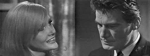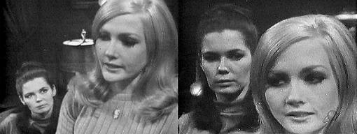 Telling him what to say? asks Vicki. He just didn't sound like himself, says Carolyn--his personality seems to have changed--his point of view, his attitude--and his attitude toward me--when will I stop making a fool of myself? How did you make a fool of yourself this time? asks Vicki, as the girls sit down in drawing room chairs. The usual way, says Carolyn--throwing myself at him, demanding declarations of love, all that sort of thing. I wish you wouldn't do that, says Vicki. I like to know where I stand, says Carolyn. Did you find out? asks Vicki. Carolyn nods. Yes, she says--he told me, and then really told me--oh, I wish I hadn't gone up there, but I would have been living in a dream--he said I'd gone out of style--for him. He said that? asks Vicki. Those were my words--his feelings, says Carolyn, I'll tell you something--I'd have expected him to say something that would hurt, that would bite and leave me with a scar forever. Instead, he left you off painlessly, says Vicki. Dumped me is the expression, says Carolyn. You'll get over it, says Vicki. Sure, says Carolyn, I'll get over it, all right--I'm just not sure what it would take. Maybe it would take a new man, suggests Vicki--someone completely different. (Monty Python?) No, says Carolyn, it will take something quite different to forget it--it will take seeing Burke choke on what he thinks is a feast--guess who beat me in the Burke Devlin sweepstakes? Laura Collins, says Vicki. Right in the winner's circle, says Carolyn--I suppose an old love is the toughest for a man to get over--whatever he felt for her years ago is back again--double. Are you sure? asks Vicki. (more jealousy?)
