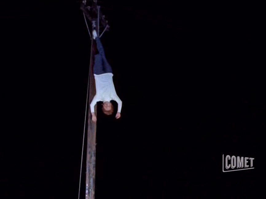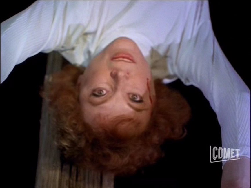 There's actually an interview from the Seventies where she talked about GARGOYLES and apparently somebody did suggest or ask her if she wanted to do that medium long shot where she's hanging from the wire. "Not this kid!" was the response. I think she said it was a teenager in a wig. For the close-up, she said the shot was accomplished while she was "hanging over the side of a bed."
