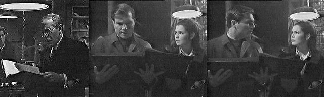 Drawing room - Mrs. Johnson had strict instructions that I was to see no one! blares Roger at Lt. Riley. So she said, Riley says, but I thought you'd prefer it if I gave you my information instead of telling it to your housekeeper. I consider this highly impertinent, complains Roger. Yes, that seems to be your prevalent attitude, says Riley, all right, I'll give my message to Mrs. Johnson. Well, what is it? asks Roger, in high dudgeon. In the first place, we have the medical records on your wife's tests, the ones she submitted to so kindly, and they verify what you told us in the first place--that the woman living here is certainly Laura Murdoch Collins, your wife. A fact that most husbands would be relieved to hear! says Roger sarcastically. The tests proved that--the dental examination, the blood work, says Riley. I have had an incredibly difficult night, shouts Roger, and I see no point in your wasting my time telling me things I already know. Aren't you at least curious what this does to our report? Asks Riley. Curious?--not in the slightest, says Roger angrily. Vicki and Frank return. Riley says he's glad Frank is here. What is it? asks Frank. He's come to tell us that officialdom has finally agreed with us--Laura is Laura--he could be commended for his perception. This surprises Vicki. Then those tests did turn out the way we thought that would, says Frank. Yes, and no surprises there, says Riley. And the woman who died in the fire, asks Vicki, she definitely is not Laura Collins. Of course she wasn't, snaps Roger--Gardner, in the capacity as the family lawyer, would you please cope with Lt. Riley, I would very much like to go to my room! Of course, says Frank--Lieutenant, perhaps you can just give me the report. I'd be glad to, says Riley--oh, Mr. Collins, you will be available for further questioning. Questioning? Asks Roger, that's absurd, what more questions could there be? This case isn't closed, and until it is, begins Riley. Listen, Lieutenant, says Roger, you suspected my wife of being an impostor, then you put her to no end of humiliation, to prove her identity--she cooperated with you fully, and so did I--and that is about all you can expect from us--Good morning. Roger exits, furious. Frank asks Riley to excuse Roger, who has had a difficult night. Yes, says Riley, sounding pissed. What else is it that you want to tell me? asks Frank. There seems to be no doubt that the woman living here is Laura Collins, says Riley, but we still have that dead body in Phoenix. And we know as much about, or as little about, that woman as you do, says Frank. I'm willing to believe that, says Frank, and yet we can't deny the fact that she, too, checked out 100 percent as Laura Murdoch Collins. Given the choice, says Frank, I think you'd accept the identity of a living woman to a dead one, especially one who died in a fire. That's what we're going to have to do, agrees Riley--we're going ahead with the burial in Phoenix--we have to bury that woman as an unidentified body. That seems the only possible solution, says Frank. It's no solution at all, says Riley, it just leaves everything up in the air--we're baffled, we just don't have any next move. Then you're stopping the investigation? asks Frank. For the time being, agrees Riley, we have no choice--but do you know something?--if I weren't a sane man, I'd put down exactly what the facts indicate--just one thing--there are two Laura Collins!