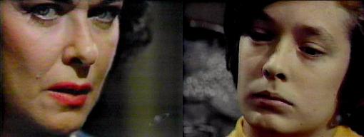 David's in the drawing room, tossing coins into what looks like an empty cup. Barnabas comes in--how is the game is going? he asks. Aunt Liz is all hung up (remember that expression, hang-up?) on the idea that I stole the book, complains David, even though Megan told her I returned it--she doesn't believe it. What she does believe? Asks Barnabas. David explains--she thinks the book she saw in my room is the one from the antique shop. What does she intend to do with it? Barn asks. Take it to Mrs.Todd, and ask a whole bunch of questions, says David--she thinks I'm a liar, and Mrs. Todd is, too. Your Aunt Liz has a way of taking things very seriously, says Barnabas. She has a way of making trouble, amends David. I don't like to see you this unhappy, says Barnabas--we will go for a walk--you can tell me all your troubles--would you like that? Yes, says David, meeting Barnabas' intense gaze. Barnabas puts his arm around David's shoulders and leads him out.