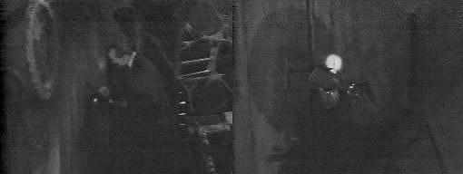 It looked as thought you had every intention of adding this one to your collection, observes Roger. I switched to collecting stamps, says Jason, but still can't resist looking at an old padlock. Let's get serious, says Roger, what are you doing down here? Would you accept curiosity, says Jason--there's a door, and a nice, old, heavy padlock--it's only natural to speculate on what might be behind it. Speculate as much as you like, but it's none of your business! says Roger. Just curiosity, says Jason again. I assumed the family treasures were hidden there. A wealth of dust, perhaps, says Roger. They walk away from the door and Roger turns on the light. Let's say I accept your story, that you're a tourist, as it were, in this basement, says Roger, then tell me, why are you here--in this house. I thought your sister explained, says Jason. Not quite fully enough, says Roger. Don't make a big deal about my presence here, says Jason, I'm just doing the tourist route. Didn't you leave here 18 years ago with Paul Stoddard? queries Roger. I left at the same time as Paul, says Jason. Where is Paul? Asks Roger. Beats me, says Jason. When was the last time you saw him? interrogates Roger. 18 years ago! shouts Jason, and heads for the stairs--right here--and he points to the basement floor emphatically. What do you mean? ask Roger. He was collecting a few personal things, relates Jason, and he came down here looking for something. And you haven't seen or heard from him since then? People sometimes said they heard about him somewhere, says Jason, but it never checked out--why, are you hoping he'll return? Of course not, says Roger gruffly. They are on either side of a pile of junk. Oh, don't you want him to come back? asks Jason. No, says Roger frankly, but he's one of the most prominent loose ends we have, and I don't want my sister left dangling by him. That's the kind of man he was, not very dependable, says Jason--by the way, I heard Liz had become something of a recluse? Where did you hear that? asks Roger. In town, says Jason. Recluse is a strong word, says Roger icily. I hear she never leaves the grounds, says Jason. That's...the truth, admits Roger hesitantly. In 18 years? Asks Jason. Approximately, says Roger. Why? Roger doesn't know. Jason, arms crossed, says it's rather odd--18 years since the last time I saw her, or I should say, since the last time she saw Paul Stoddard. Roger asks, "What's it to you?" Nothing, says Jason, just an innocent bystander, it all ties up though, don't you think--her shutting herself up coincides with the time Stoddard went away. Roger gives him a dirty look (and it seems to be very sloppily edited, as though something was cut out), and suggests they go. Jason agrees--he's allergic to dust, anyway. Roger has turned off the light and is way ahead of him, heading for the stairs. By the way, says Jason, what were you doing down here? "That is my business," retorts Roger. Jason checks the padlock, then joins Roger going upstairs. We see the padlock one more time.