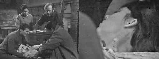 Cottage - Sam opens the door to Joe and tells him a doctor is with Maggie. They agree that she looks very ill, washed out. Dr. Woodard comes out to inform them that Maggie's problem is a severe loss of blood.
