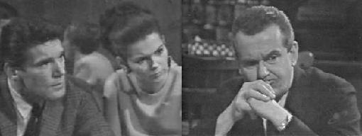 Forget it, he suggests, and they dance. Vicki, who says she thinks she hears dogs howling, can't relax and enjoy herself. Burke plays a song on the jukebox and they keep on dancing.