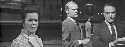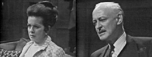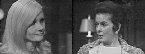 Roger comes in and tells the disbelieving pair that it looks like Liz is getting a divorce--so she can marry Jason! Carolyn is certain Jason is holding something over her mother, probably having to do with that mysterious basement room, so she determines to get the key or break in, if she must, and get to the truth. If she exposes what's in that room, she's sure it will loosen Jason's hold over her mother. Roger tells her the key is on a chain around Liz' neck, so Carolyn goes into the drawing room, where Jason and Liz have been arguing about his implication that they were going to marry. She'd rather go to prison than marry him, she vows, but Jason reminds her that Carolyn won't be very happy to learn her mother murdered her father. "Dear Liz" he calls her, but she is disgusted with his blarney. Carolyn enters and politely requests that Liz give her the key on the chain around her neck.