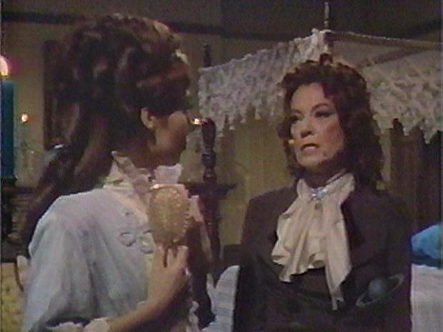 I wonder if I'm the only one here who sees a distinct resemblance between Grayson Hall as the Countess du Pres in today's magnificent screen shot, and Dr. Frank N. Furter in the Rocky Horror Picture Show. It looks as if Grayson is incanting these lines: