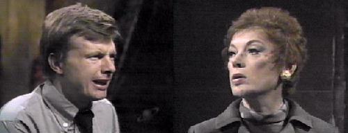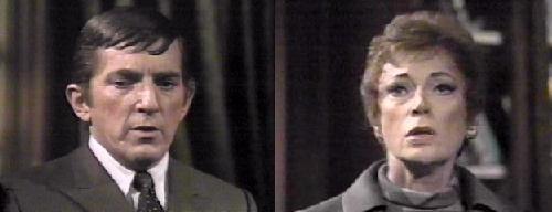 Replies Julia, "I no longer know what is right or wrong, I only know what is necessary." (a classic Julia remark.) Willie begs her to talk Barnabas out of this, but she says she can't, and can't refuse to help him, she's already agreed, and she will. Willie realizes nothing will stop it from happening, and tells Julia he's going to leave, he can't take part in this--he's leaving now. All right, she says; she won't insist he go to Windcliff. She asks him where he'll go, but he doesn't know, he just knows he can't be part of this, can't watch it. It's too horrible. He backs away, then runs up the stairs. "It's too horrible," he repeats, and Julia's face looks like she completely agrees with him.