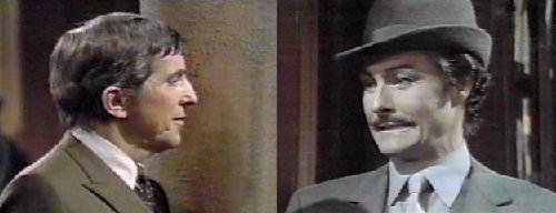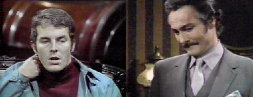 Upstairs, Joe tells Barnabas he'll stop by the Old House 8 or 8:30. Willie joins them, surprised and nervous to see Joe, who thanks him for helping to get him to the hospital. He tells Willie their fight was his fault and asks if he accepts his apology. Willie agrees, and insincerely shakes Joe's hand. Joe leaves. Willie tells Barnabas he wishes they'd left Joe to die. (nice, Willie!) Barnabas says neither of them could have done that. If it were up to me, says Willie, Joe would be dead. Barn wryly says it's fortunate it wasn't. Despondent, Willie supposes Joe and Maggie will be getting married. Probably, agrees Barn, then asks Willie if he's still infatuated with Maggie. Willie doesn't want to discuss this and tells Barnabas he's clearing out--he can't take what's going on with the experiment. Barnabas tells him he can't leave here and he knows it, he was allowed to leave Windcliff in Julia's custody, and if he leaves now, Julia will have to commit him again. No, says Willie, she said he could go if he wants to--Barnabas doesn't need him anymore, he's got Julia, and Haskell's got Maggie. (aw, poor Willie) Barnabas asks Willie what might happen to Maggie if Adam learns Willie refused to help with the experiment-- Adam would be furious, and might take out his anger on Maggie. (ever the manipulator, Barnabas!) Why, asks Willie? For the same reason he kidnapped Vicki, because he knew how Barn felt about her, and might do the same to Maggie. Barnabas cleverly reminds Willie that Adam saw him with Maggie and once tried to kill her, right?