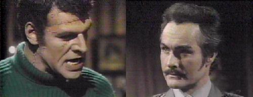 Nicholas stabs the same letter opener into the same table Eve did, wondering when Barnabas will learn it's useless to fight him--he won't allow him to kill Eve and defeat him! It's too easy to destroy him--and such a great pleasure! If he was sure it wouldn't also destroy Adam. . .but he considers his plans for Barnabas as delightful as death would be. Adam, hinting Ang listens to her own orders, not Nick's, tells Nicholas Angelique is out of the house. Blair is angry she's missing when he needs her. It won't happen again, says Nicholas, but Adam says dealing with Barnabas is HIS responsibility, not Angelique's. Adam grabs Nicholas' arms and tells him to listen to him. For a moment, satanic fire flares in Nicholas' eyes and he looks as if he could gladly kill Adam. Then he smiles. "It's taken you less time than I would have thought to begin to give orders," he tells Adam--if you are not careful, I shall see to it that you never give another." Adam looks like a chastised little boy, lip thrust out defiantly.