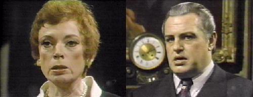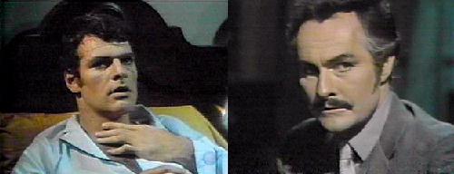 Old House - Stokes offers more sherry to Nicholas, who says he must be going. "Please don't," says Julia. Stokes reminds Blair that Barnabas will be disappointed. Nicholas wonders what's keeping him. Julia wonders, too. Perhaps he stayed with Liz, suggests Nicholas. Stokes agrees; otherwise, Barn would never leave guests waiting. Nick asks Julia if Liz is that ill. She's very ill, replies Julia--her rational moments come and go, but she seemed upset, calling to Barnabas as though only he could comfort her, so she felt he should be with her. Julia gave her a sedative and Barnabas should be here before long. The clock strikes one AM and Nicholas comments on how nervous she seems. It's because of Liz, says Julia. Stokes remarks that's understandably frustrating. No one seems able to help Liz, remarks Nicholas. He stands--he must be going--it appears Barnabas isn't getting here this evening. Stokes says he wanted to discuss his house with him. Nicholas begs off, says he must go--thank Barnabas for an interesting evening. He shakes their hands, makes pleasant good-byes and sees himself out. What will happen if Barnabas is found in Blair's house? Frets Julia--what will happen?--what will we do? Julia demands an answer from Stokes. He says nothing--we have to wait, we have no other choice. We must warn Barnabas, she insists. Stokes says they couldn't possibly get there ahead of Blair--besides, perhaps Barnabas already left the house by now and Blair will never know he was there. Possible, says Julia, but he's been gone so long. Concerned, Stokes says he doesn't know. Julia drains her glass, worriedly thinking that Barn could have run into Adam, Eve might not be sleeping. . . Stokes reminds her Barnabas knew the risks and was willing to take them--he made his choice. Julia is sure something has happened to him--he's dead, she knows it, Adam found and killed him.