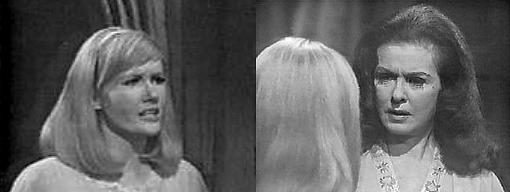 Carolyn is laughing riotously, telling Liz, "You never answered--I remember the phone rang and rang and you refused to answer!" Could you blame me? asks Liz, in a much better frame of mind--Halloween, midnight, three calls for the ghost of Collinwood were not for me--I suppose all your friends were very angry with me." Still laughing, Carolyn covers her mouth with he hand and says, oh, no, Mother, no one could ever be angry with you--you've always been very kind--a bit of a kook, maybe, but kind. A bit of a kook? Says Liz, grinning--is that any way to speak to your mother? If it makes you laugh, it is, says Carolyn--I wish you'd laugh more often--it sounds so marvelous in this gloomy house. We have had some wonderful times together, haven't we, darling? Asks Liz. Yes, agrees Carolyn, and we'll have them again, right? Right, agrees Liz--if you'll go upstairs and get your beauty sleep--it's almost midnight! The witching hour, says Carolyn--why don't you come up to bed yourself? I want to wait for Uncle Roger, says Liz, there's something I want to discuss with him. Will you smile? asks Carolyn. I'll try to, promises Liz--now scoot! A smile's the best thing to chase the goblins away, says Carolyn--how long will you wait--suppose Uncle Roger's out all night? Then I'll be up all night, says Liz--now go to bed. Carolyn kisses Liz on the cheek and says, "I love you, Mother--please don't worry!" I'll try not to, agrees Liz--and thank you for being so sweet. Carolyn blows her a kiss and leaves. The clock strikes midnight. Liz goes to the window, nervous, and just stands there.