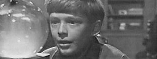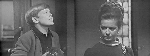 We see one of David's blinking eyes reflected eerily through his crystal ball. Vicki says, impatiently, "David, stop playing with that thing or you'll never get through with your lessons!" "I want to see what's going to happen," he says. Vicki, seated at the desk, predicts direly, "Well, you won't learn a thing, that's what's going to happen. Now come on, sit down" He reluctantly sits next to Vicki, who points to a paper on the desk and says she wants him to do these math problems. David takes pen in hand and works for half a second, then looks up and asked, "Everyone's wondering about Mr. Malloy, aren't they/" Vicki taps the paper and says, "We're doing math!" David works another two seconds and asks, "When did he disappear?" "Last night," Vicki supplies. "Now come on, David." He writes a bit more, then offers, "I bet nobody really knows what happened to him." "I don't think anything happened to him," Vicki says. "He probably had some sort of emergency and had to leave town unexpectedly. Now come on, finish that." "If they would ask me, I could tell them," David boasts, his eyes bright. Vicki crosses one hand over the other, giving in. "All right, David," she says, "go and look in your crystal ball and tell me where Mr. Malloy is--then let's get this finished." "I don't have to have to look, I looked already," David admits. "He's DEAD!" David rises from his seat and Vicki chastises, "David, that's a terrible thing to say!" "And that's not all," David continues ignoring her, "it told me something else--he was killed by someone!" "David, stop it!" Vicki admonishes. "And do you want to know who he was killed by?" David asks, walking over towards the crystal ball and gazing at it triumphantly, "I bet you do!" "All right, tell me," Vicki asks.