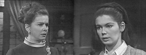 With Joe standing worriedly by, Liz calls Mrs. Johnson and asks her if Mr. Malloy said anything about visiting friends or his cousins. "I see," Liz says, "no, I can't check with them, they have no phone. Oh, Mrs. Johnson, if you hear anything, please call me immediately. Yes, thank you. Goodbye." Liz hangs up and says to Joe, "Still no word on him. I hope nothing's gone wrong." Vicki comes in, looking for David. Mrs. Stoddard said she sent him up to Vicki, but he apparently never got there. Liz turns to Joe and suggests they check the hospitals in case Malloy got hurt. She also asks him to inquire around in town and see if anyone has seen Malloy since last night. Joe agrees. "A man doesn't just vanish into thin air," Liz comments, and Vicki drops a bombshell--"He was here last night." "In this house?" Liz asks, looking totally perplexed. "What time was that?" A little bit before 10, Vicki says--he came to see Roger. "Mr. Collins saw Mr. Malloy last night?" Liz persists, again startled. Yes, Vicki says. Liz tells Joe she'll get to the contracts in a few minutes, and asks him if he'd mind waiting outside. Not at all, Joe says, and closes the double doors behind him. Liz turns to Vicki. "You said Mr. Malloy came here to see my brother a little before 10 last night?" "Yes." Vicki doesn't know what Malloy came to see Roger about, however, but she volunteers that, on her way upstairs, she let Malloy, who seemed very upset, into Collinwood. In what way, Liz inquires. Vicki asks if something had happened to Mr. Malloy, and Liz explains that she doesn't know. In what way did he seem upset, she asks Vicki, what did he say. Vicki explains that he was very anxious to see Roger, and when she told him Roger was busy, she said Malloy told her to go disturb him or HE would. Malloy seemed very distraught. Liz asks why Vicki didn't mention all this before, and Vicki says she didn't think it her business. Liz asks if she told Roger Malloy had stopped by, but Vicki says she didn't--just at that moment, Roger came in and saw Mr. Malloy. He asked him into the drawing room and closed the doors. Then she didn't hear what they were discussing, Liz asks,