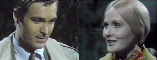 You shouldn't be paying for a room at the Collinsport Inn, insists Carolyn--plus I'd feel better if you lived on the property, closer to Amy. He asks how far the cottage is from the main house. Quite a distance, and isolated, she replies. I like my privacy, he says. She assures him he'll have plenty of that. He grins boyishly and accepts. He looks at her as if he wants to kiss her, remarking on how late it's getting. She looks disappointed that he didn't kiss her, and asks if something is wrong--the way you look at me--may I be honest?--as if you want to kiss me. He looks uncertain, and explains that he's concerned he's beginning to like her too much, and he isn't the kind of guy she should get involved with. For one thing, says Chris, you're a Stoddard, I'm a Jennings (and there will be future irony here). Carolyn says it makes no difference to me. He turns away and says he should go back to town. She asks him to look at her, please. He doesn't, so she walks around and faces him. He kisses her, a long one, and we see the Cupid in the fountain, which fades into David, who might have been spying from his room on the smooching pair.