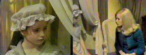 Carolyn, dusting her room, is holding the soldier when she hears Sarah's flute--then the ghost girl herself appears! Sarah begs them not to send David away; she'll be lonely! She comes right out and tells Carolyn she's a ghost.