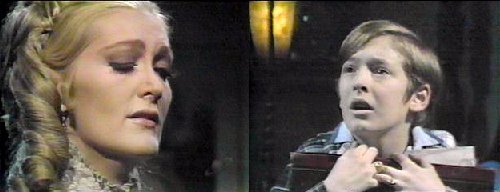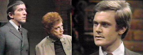As usual, Julia tries to talk sense. How does he know he was murdered? Barnabas tells her about the ledger, which was sitting on the desk and is now missing. Julia can't believe someone killed Ezra to get the book. Barnabas tells her the jeweler had information he was going to pass on to me--he learned who he sold the pentagram to so long ago. Did you question David? Julia asks. No, says Barnabas, the boy was too upset when they found the body. Barn did question everyone in the house at the time (go, Barnabas Holmes). Who doe you suspect? asks Julia. The woman we saw, says Barn--the one who led us to Chris' house and to the woods where the pentagram was buried--it was directly responsible for Braithwaite being in the house. Julia protests that the woman wouldn't have killed the jeweler after doing all that--it makes no sense. What of the man Mrs. Johnson saw? asks Barnabas. Julia smiles and calls the housekeeper a repressed hysteric. But Maggie saw him too, says Barnabas--suppose this man and the woman we saw are in conflict?--she wants the secret known, he doesn't. Then we're all in danger, says Julia, and nothing can be done. The spirits have a helper, says Barnabas, and we must make that unwilling helper assist us, too.