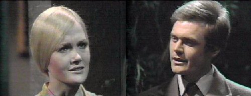 Chris and Carolyn return from a date, glad they have Collinwood to themselves. Carolyn pours a drink to celebrate the emergence of the "real" Chris Jennings, who didn't look troubled all night. You've been too busy enjoying yourself, she says, to worry about your deep, dark secret. "What secret?" he snaps, then apologizes. She feels she's spoiled the mood. No, I had a great, relaxed time, he says, kissing her hair. She asks why. You know the answer, he says. She, however, wants to be told, and they exchange one of the most passionate kisses we've seen on this show. He holds her. They wish every night could be like tonight--is it possible? Chris doesn't know, but kisses her neck. She feels he has a hang-up, and wants to help him with it. You can't, he says. Carolyn stands and walks away from him--are you married? she asks. He laughs--no, that isn't it. She wonders what's causing the barrier between them--how do you feel about marriage? she asks--no, I'm not proposing, I just want your opinion on the subject--I'd like to know where I stand in terms of the future--If there's no hope, I want to know it now (forward little minx, isn't she?).