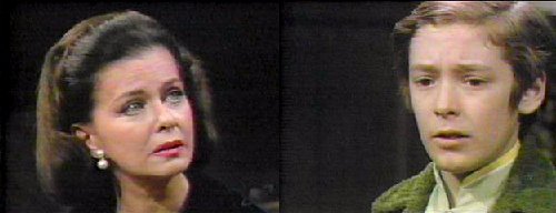 Chris listens intently as Barnabas relates what happened to the Collins family the previous night--the house belongs to the ghosts now. Chris wonders about the woman who helped him, surely she isn't involved. Barnabas has examined all the records, trying to establish a connection between Chris and the mystery woman. I'm trapped, says Chris, I don't know why I ever thought I could get through this. You must, insists Barnabas. I don't know what's going to happen to me at night, Chris reminds him--I can't stay in one place, pretending I'm like other people; I can't get close to anyone, and should just keep going, running until I'm caught. You can't, says Barnabas. Chris wonders--how do you know so much about me? Barnabas doesn't answer--he looks out the window and spots David outside. He reminds the boy he isn't allowed to be outside alone--your father said so. You don't understand, says David. Maggie pops in next to Barnabas and tells David she's been looking for him. (I think Barnabas and Maggie look kind of nice together.) David complains it's like a prison in the house. She firmly ushers him inside--you have history to read, and there will be a test in an hour, she warns. All right, he says, and goes upstairs. He promised me he wouldn't go outside, Maggie tells Barn. Barnabas reveals what Chris said, about seeing a stranger staring at the house--a figure from another time. Quentin? she asks, explaining to Chris and Barnabas how she heard David say that name after he'd claimed to have fallen--he kept murmuring that name.