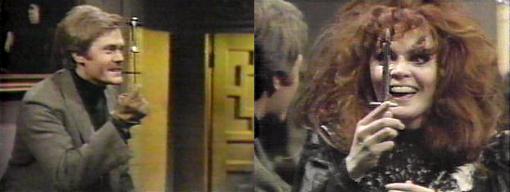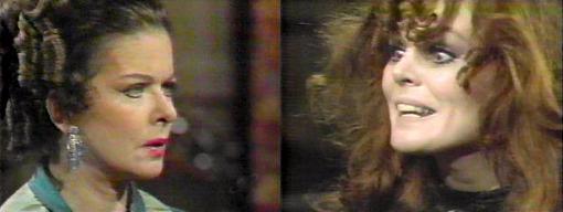NOTES: The scenes between Jonathan Frid and Marie Wallace were poignant, heartbreaking, a true joy to watch. They played so well off each other, and whatever you think of Jenny, you had to feel sorry for her here. Why Barnabas kept insisting her babies were dolls when he knows she is insane didn't jive, but now he has another piece of this puzzle in his grasp--a boy and a girl... You can't blame Quentin for wanting to kill his wife, since she already killed him once, yet you can't help but feel sorry for this poorly used woman who only wanted to love and be loved by Quentin. Laura is such a bitch, considering she is responsible for the woman's insanity, at least partially, and you see how immoral the Phoenix in human form really is. Kudos to everyone, but especially Wallace and Frid, for today's shows.