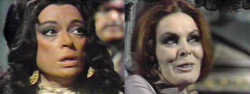 Downstairs, Magda and Sandor hear the noise and run upstairs to investigate. Jenny is sobbing; Magda recognizes her voice. As Magda bangs on the locked door, Sandor finds the keys on the floor. They let themselves in and Magda runs toward Jenny, who screams, "I told you never to speak to me again!" We were so worried about you when you disappeared from Collinwood! Cries Magda. GET OUT! rants Jenny--Quentin is coming, you must not see him. Quentin went to Collinwood, says Sandor. I told you yesterday I would kill you both if you told him! shouts Jenny. That was years ago, says Sandor, mystified. Jenny is confused. No, she says, it was. . .no, it wasn't. "Quentin and I are married," says Jenny--"Do you have any idea what it's like to be a Collins? I am a Collins, Quentin loves me." Magda points out what Quentin has done to her. Jenny orders her not to speak to her like that--don't talk of Quentin--YOU GYPSY! "You are a gypsy, too," says Magda. (Wow, what a stunning revelation!) "What I was is not what I am," insists Jenny--what I am is what I will be. . .why did we ever come here?--I looked out the window this morning and there was your caravan--go back where you came from! Magda asks, do you remember anything since then? My husband Quentin, says Jenny fondly, where is he, he won't let anyone see me, he loves me so much--he locked me up here. . .no, that wasn't Quentin, who loves me, he does lock me in the room, but only because he doesn't want anyone to see me... Magda closes her eyes miserably. No, continues Jenny, Quentin is very jealous, he doesn't want anyone to see me.