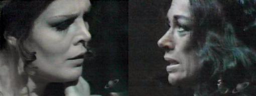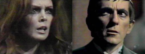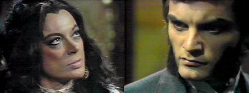 Old House - a dog howls.  Barnabas rises from his coffin.  (Get those hinges some oil!)  He sits up, calls to Magda or Sandor.  Magda comes down.  I found Jenny, she says--she's still up there--they wanted to take her away, but I wouldn't let them.  Good, says Barnabas, closing his coffin--I want to ask Jenny many questions and not be disturbed--I realize someone from Collinwood will show up soon, so I must hurry.  I need to speak to you, says Magda--it's important for you to listen to me--I want you to release Sandor, it's important, we must take my sister away from here.  "Your sister?" he asks.  "Jenny," she reveals.  Wow, says Barnabas' face.  If Jenny stays here, Quentin will kill her, says Magda.  I cannot let you go, says Barnabas.  You must, says Magda--I know why you're here in this century, to save two lives of people living 100 years in the future--but my sister has nothing to do with that.  But she DOES, says Barnabas--she ran away to this house, but I wasn't here, the house was empty except for Jenny, and I changed that, locked her in her room--you wouldn't even have known she was at Collinwood, had I not done that--the story must be played out as it was originally, or I won't be able to save either David or Chris.  Names, names, complains Magda, talk to me about Sandor and Jenny!  "I will not let you go!" says Barnabas.  Magda cries, I won't let you sacrifice Jenny.  They face each.  He promises, if you do anything to interfere, there will be a sacrifice--yours!  He leaves.  Magda stands there, tight-lipped, angry, and follows him upstairs.