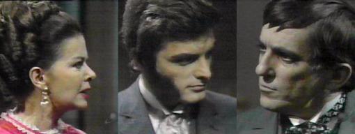 --it's nice to see her on equal terms, or didn't Quentin tell you the truth?  Judith asks to see Barnabas alone.  Magda tells her, you could have said that yesterday.  "I can say it now," insists Judith.  It will do you no good, says Magda, you imprisoned her sister.  Because she was mad, declares Judith--I felt pity for her and felt Quentin contributed toward it, but now that I know Jenny is your sister, I think there is already madness in her background.  Magda starts to attack Judith, but Barnabas gets between them and tells Magda to go to Jenny--she needs you.  Magda agrees to leave the two of them to TALK while she speaks to her sister.  I am ashamed you arrived a short time knowing nothing about us, says Judith--now you know the worst.  I'm not here to make judgments, but to help, he assures her.  Why did you keep her here, she asks, instead of sending her back to us?  I didn't know the story, he says, I was trying to decide what to do when I was called away--I'm very concerned for this poor, unhappy woman and her children.  There are no children, Judith hastily tells him.  She talks of them, says Barn.  She's mad, says Judith.  It isn't what you and Edward are going to do, says Barnabas, but what JENNY is going to do.  She would kill us all, says Judith, we will have to face a public scandal and send her to an institution this night.