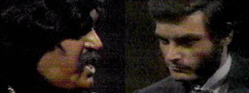 Quentin listens as Magda explains, we gave it back to your brother, the murderer. "That's enough!" Quentin orders. Magda notes with satisfaction that he's beginning to get frightened now that the time is drawing closer. Quentin advises her to try her curse on someone else; he's leaving Collinwood tonight. She laughs. Leaving won't stop the curse, she exults, you can't escape it no matter where you go. GET OUT OF HERE! Quentin shouts. Whatever you say, agrees Magda, I'll send Sandor for Jenny's things. She leaves. Judith tells Quentin he's an unspeakable liar and demands back the money. I'm keeping it; he says, you want me to leave, don't you? Yes, agrees Judith, but I want the gypsies gone, too. I did my best, but for once they weren't interested in money, explains Quentin. Then you didn't keep your end of the bargain, insists Judith. Q tells her to stop it--I gave you a signed agreement waiving all my rights to my inheritance. She agrees to give it back, but he doesn't want it, he wants to leave but needs a "small financial stake." I would hardly call 10 thousand dollars a small stake, she informs him. You're right, he says, but I'm not as good at pinching pennies as you are. "You want the money, Judith?" he barks. "Sue me!" And he races upstairs, leaving her fuming.