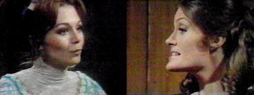 Judith, wearing a lovely green velvet dress, tends to her mail. She asks Beth into the drawing room and hands her a letter terminating her employment at Collinwood, plus two weeks' severance pay--you can thank Edward for the latter; says Judith, frankly, I was against it. Beth timidly asks, why am I being fired? Judith gives her a look and says, with Jenny gone, your services are no longer needed. Beth, shocked at this abrupt dismissal, doesn't know what to say. Judith doesn't understand why--you were only kept on to care for Jenny. What about the children? asks Beth. They'll stay in Collinsport with Mrs. Fillmore, replies Judith. They could be brought back here, with Jenny gone, suggests Beth eagerly. No, says Judith, not very practical, and how to explain two infant children suddenly arriving at the house? Tell the truth, says Beth, that the children belong to Quentin and Jenny. Impossible, says Judith sternly, Quentin must never know about the children. I never understood why you and Mr. Edward decided to do that, says Beth--it seems to me Quentin should know about the children. Judith notes, you seem very concerned about Quentin lately. What is that supposed to mean? asks Beth. That your infatuation for my brother hasn't gone unnoticed, says Judith--the servants have been gossiping about it for a month. Is that the real reason for my dismissal? asks Beth. The reason for your dismissal is stated in the letter, says Judith cruelly, sending Beth scuttling away. Quentin returns home and Judith meets him. Everything is settled, he says--you'll be rid of all of us by nightfall. Splendid, pronounces Judith--where are you he going--just so I can forward your mail and refer any creditors you might have accumulated. Quentin laughs--you do think of everything! "I try to," she retorts. Magda knocks at the door; Judith answers. Quentin, heading upstairs, stops. I have come for my sister's possessions, says Magda--or have you also buried them? Judith curtly tells her, I'll have Beth put them together, but in the meantime, I suggest you pack your own things and be ready to leave tonight. What makes you think we're leaving? asks Magda. If you expect anymore money than you've already been given...begins Judith. I wouldn't take a penny from you, insists Magda--you have always treated us badly because we are gypsies and inferior to the great Collinses, but we are faithful to something you don't practice--betraying your own flesh and blood! (You GO, Magda!) Judith is horrified to hear they didn't take the money.