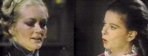 Magda joins Beth in the foyer and says, I came in "her own way" since Judith wouldn't let me in--did youget the pentagram to the baby boy? Yes, says Beth, and one for myself, which she shows Magda is around her neck--the boy is wearing it now. And does Barnabas know everything? asks the gypsy. Yes, says Beth--I had to tell him. You're a fool, says Magda. He wants to help Quentin, says Beth. He can't, argues Magda, I'm the only one who can, and will tonight--I found the only way to end the curse. Beth asks what it is. Magda checks the maid's throat, spots the marks and gasps, I won't tell you! Are you going to harm him? asks Beth. I can't anymore than he has already been harmed, says Magda--trust and believe in me and know that what I do will end his misery. She takes her leave, retrieving the gun from the planter. She loads it with silver bullets and heads off.