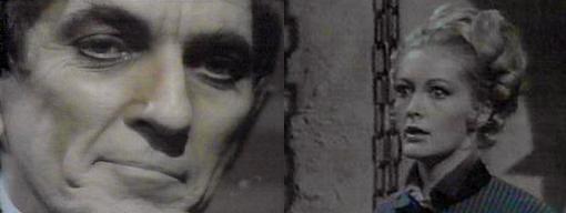 He can't be dead, she insists.  He is, Dirk insists--I did it because of Laura, to get revenge.  Dirk addresses the ceiling and tells Laura, I'm not through yet--this is just the beginning--before I'm through, I'll get them all.  Beth tells him Laura wouldn't want him to kill anymore.  He turns on her and asks, how would YOU know, you hated Laura from the start and always told Judith lies about her.  That isn't true, protests Beth.  Dirk rants on a different tangent--weren't you happy when I was dismissed from this place?  (Davis plays the loon so well!)  No, says Beth.  He touches her chin and asks if she's happy now.  When she moves to leave, he points the gun at her and promises she won't get very far.  What are you going to do to me? asks Beth.  He seems to revel in her fear--you're afraid you're going to be the next on my list, aren't you? he asks, then grabs her from behind--since you're so friendly with Barnabas, he suggests, as they struggle, maybe you can join him!  Are you going to kill me without giving me a chance? Asks Beth.  He hands her the gun, which is learns is empty after firing it at him.  Do you think I'd give you a loaded gun?--of course it's empty! cries Dirk--I want to have some fun watching you go and tell Judith about Barnabas being in the coffin in the cellar, and how you will be down there next to him, with an empty gun!  (Dirk tosses her downstairs.)  That will be some tale to tell, how, won't it? asks Dirk, sucking his thumb, and you can pretend you're guarding Barnabas--poor, sweet Barnabas. . .he laughs.  Beth goes downstairs and finds Barnabas hanging down over his coffin.  Gently, she re-arranges his body and closes the lid.  Miserably unhappy, Beth leans over the coffin and begins to cry.