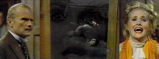 Jamison calls for Quentin--why did you ask about the telephone when you already know about it?--Amy used to talk to you!  Angelique stands at the foot of the couch.  Remember everything I said to you, she urges--answer my question now with the truth for all time--"Tell me who you are!"  David Collins, he responds.  She asks him again, louder, and gets the same response.  Asks again, desperately. "David Collins!" he cries--"my name is David!"  She asks again, but this time, he replies that he isn't sure.  (Progress?)