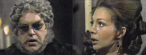 860 - Edward catches Kitty in the act of trying to steal Q's painting. What are you doing here? he demands. Kitty, realizing how angry Edward's is, decides to try what has worked so well before--I'm not Kitty, she says--why do you call me that?--"I must find it, he'll be angry!" she cries. Who? asks Edward.  You know as well as I do, she says, then faints in his arms. Immediately awakening, she recognizes him, and expresses shock to learn she's in Quentin's room. Why does this keep happening? she asks--what was I doing when you came into the room?  You were searching the armoire, he explains--for what I don't know. Perplexed, she says, I want to go to my room. She's concerned about meeting Quentin.  He need never know, Edward assures her. I'd feel so guilty, she says--please stop asking me questions. He leads her out, assuring her, we'll pretend it never happened. Outside Q's room, he says, Count Petofi phoned you, right after you went upstairs; the clock was striking nine. Kitty is visibly shaken. Petofi will call back later, says Edward. I'm sure he will, says Kitty. Hidden behind the draperies is Quentin, who goes into his room and finds the painting gone, too. He frantically searches the armoire.  Downstairs in the foyer, Kitty tells Edward, I don't want to see Petofi if he stops by.  You won't have to, he promises--I'm telling Cook to brew us some tea. Kitty breathes a sigh of relief that Edward believed her--but what will she say to Petofi when he comes for the portrait? Then she hears Josette's music and goes to Barnabas' portrait, walking like a ghost. She struggles against the feelings, ordering herself, don't look at it. Hand to her head, her body begins to spin, near to fainting, when Angelique comes in and steadies her.  She offers to get Kitty a doctor.  No, says Kitty, it's just my nerves, all I've gone through--going to the rectory...Angelique, eyes huge, up on this instantly--why did you go there? She asks. Do you know the woman who lived there? asks Kitty. Why do you use the past tense? demands Angelique. Because, says Kitty, she's disappeared. What? exclaims Ang. Before Count Petofi's eyes, says Kitty--and before she can finish the sentence, Angelique is racing for the door. Wait! cries Kitty--you must tell me what you know! Angelique, however, is gone. Kitty looks at her reflection in the mirror, thinking Angelique knows more than she's telling--but how can a woman disappear?--and why do I do as I do, and not understand anything?--I must!  Her face takes on an expression of determination.