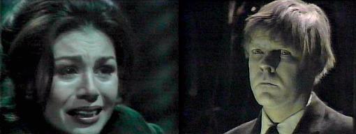 --and to agree with everything that happened afterwards, so I did. He moves closer to her, murmuring, "Maggie." I knew you weren't a part of it, she says. I'm so glad you're back, and alive, he says. There are things you must explain, insists Maggie. Yes, says Barnabas--to think that on this strange night, you might have come back to us in that dreadful condition--but we're lucky in a way--we can fight, and will--together--if he thinks you're one of them, you can help. There are many questions, she says. I promise to answer everything, says Barn. Julia interrupts, apologizing--I thought I should tell you--I can't do anything with Chris, he insists on staying. We must accept it, says Barnabas, and we now have a new ally--someone we need, but someone they must protect. Both Julia and Barnabas look at Maggie, who gazes back at them.