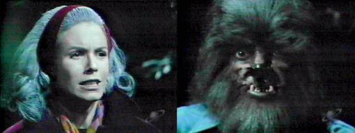 Sabrina faces down the werewolf, who moves toward her. Bruno leaps in; man and beast battle each together. Bruno pumps a bullet into the werewolf, who runs off. You're all right, Bruno assures Sabrina--he's gone. Sabrina sinks to her knees, sobbing no. He doesn't understand her reaction--you had a bad scare, but I saved you. "Why didn't you leave me alone?" she wails. I don't get it, he says--the werewolf would have killed you. He wouldn't have hurt me, insists Sabrina, crying.