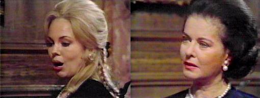 The scene between Angelique and Barnabas was excellent, as most of their scenes are. He could have refused to help her, I guess, thinking back on their past relationship and how often she stabbed him in the back, but he agreed to get Carolyn and Liz out of her home--perhaps a bit too late, something neither of them know yet.