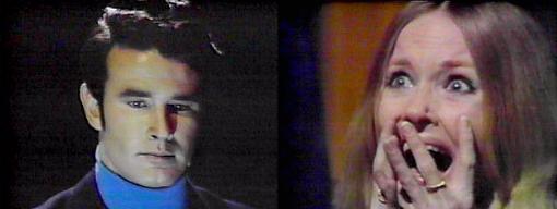 Angelique takes a drink while she awaits her first husband. She puts down the glass at the sound of the doorbell. Barnabas' first question when she lets him in is, "Where's Carolyn?" She and her mother are both sleeping, reports Ang. What's the matter? he asks. Nothing with them, plenty with me, she says sharply. She leads him into the living room and says, my life as Angelique Rumson is terribly important to me, especially Sky--I couldn't bear it if I lost him--"I WON'T lose him!" I know that, says Barnabas. Then you must know that you must get Carolyn and Elizabeth out of here, insists Angelique. You said they could stay here as long as he was away! Barnabas reminds her. They can stay even longer as far as Sky is concerned, she says when I told him we had houseguests, he said they could stay here as long as they wished. Did you tell him who they are? asks Barnabas. Yes, and he was very generous about it, says Angelique--he's a very kind and generous man--but I am NOT so generous, and I won't give up my happiness to help anyone. But if he approves...? asks Barn. Listen to me, says Ang, last night, Liz was looking at me very intently, and insisted I reminded her of someone. Carolyn suggested perhaps Liz had seen me in some magazine.