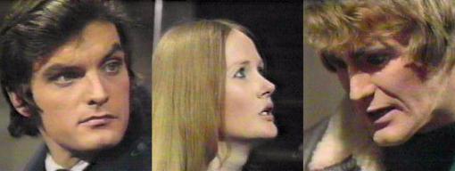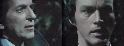 When Barnabas enters Collinwood, Julia anxiously asks where he's been. I had a long talk with Jeb, says Barn, during which we resolved our differences, reaffirmed our belief in the cause, and parted as friends, for the time being--when this period of peace is over, what then? What do you mean? asks Julia. After I spoke to Jeb, explains Barn, I went for a long walk and wondered what the ultimate struggle that must take place between me and Jeb will mean to my friends, the ones I love--I thought of the possibility of people getting hurt--and of Josette--how can I really do anything if Josette is their hostage?--if moving against them will mean terrible torture for her? Barnabas, if you don't fight...begins Julia. "I know," he finishes, "Carolyn and everyone else will face an inhuman fate.