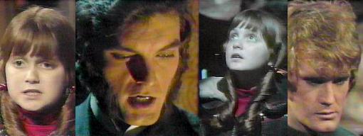 Collinwood drawing room - Amy draws. What is that? asks Carolyn, taking it from her to look at it. --why are you drawing that? It's pretty, the child answers. Carolyn disagrees--it's the last thing in the world I'd call it--what gave you the idea for drawing it, anyway? Mrs. Todd has one on her locket, says Amy. Philip has one on his ring, says Carolyn--I wish I could understand its fascination for everyone--it makes me feel uncomfortable. Quentin enters the room, sending Amy darting into Carolyn's arms. "Don't let him in here!" she cries. Carolyn assures her there's no reason to be frightened--I know this man who scared you in the shop, and you were wrong, then and now. No! cries Amy, twice. What is it about me that scares you so much? asks Quentin. You look like the ghost, like Quentin Collins, says Amy. That's because he's related to the man who frightened you, says Carolyn, he's a cousin of ours, who is also named Quentin--but not the same one--how could he be? (ask Barnabas) Amy clings to Carolyn, hiding her face. She's being unreasonable about this, Quentin, says Carolyn--I don't know what to do. Well I do, says Q, leave us alone a minute. No! protests Amy. Please, says Quentin, I know this moment will be very painful, but less painful than your fear of me continuing. If you say so, agrees, Carolyn--Amy, I'm going to see Mrs. Johnson for a minute. I'm going to bed, insists Amy. Quentin wants to speak to you, Carolyn reminds her. I don't want to speak to him, says a terrified Amy. Carolyn soothes her--there's not a reason in the world you can't speak to him. Gently, Quentin repeats Carolyn's words. Carolyn walks from the room. Amy turns away from Quentin. "Don't turn away from me," he says, reaching to pull her around to face him. He takes her face in his hand and asks, can you feel my touch? (lucky gal)! There's nothing to be afraid of in my hand, he says, just as there's nothing for you to be afraid of in me. He looks straight into her eyes--I know once you were afraid of someone named Quentin Collins, but I'm not that man, I swear it (but he's lying and we know it)!