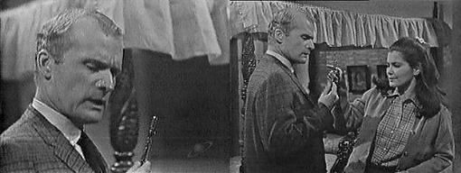 I hope I'll be able to help you with your plans, says Sarah, but you understand I'm only interested in solving this mystery. According to the coroner, there is no mystery, says Burke--Bill died accidentally. There are three people that know better than that, says Sarah--you, me and the person who killed him. Very true, says Burke. The phone rings and he excuses himself--yes, this is Burke Devlin--oh, yes, I'm always glad to hear from you--when was this?--last night?--I see--sure thing, thanks very much--right--he hangs up. Well, Burke says, that's very interesting--Roger brought Victoria Winters to the Blue Whale last night. Is that so unusual? asks Sarah. No, not really, says Burke, but Sam Evans was there with his daughter, and it seems Sam and Roger were arguing about something--what they were quarreling about has to be connected with Malloy's death--so evidently his death didn't solve their little problems--how did Mr. Malloy feel about Roger coming back to live at Collinwood? Very upset, replies Sarah, he had no use for Roger. How did Bill feel about Sam Evans? asks Burke. They were friend, she says, not close friends, but I often heard Mr. Malloy say what a shame it was the way Sam Evans had let himself go to seed. Did he ever mention anything about why he thought Sam had gone to seed? asks Burke. Not to me, he didn't, she says. If we can find the answer to that question, says Burke, we might find the answer to the big one--the big question--who killed Bill Malloy?